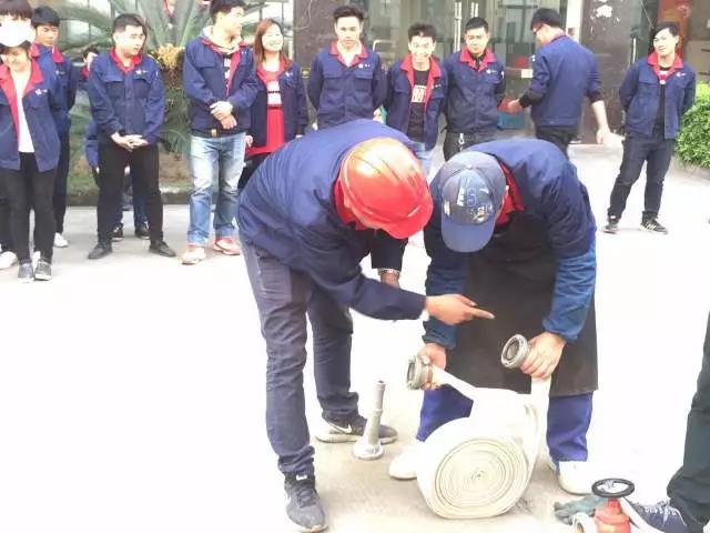 後(hòu),行政部現場組織企業人員開(kāi)展水帶駁接、幹粉滅火器使用演練。在演練中,行政科長(cháng)朱方劍先詳細講解了使用水帶駁接及幹粉滅火器滅火的正确姿勢及注意事(shì)項。各部門、車間員工積極踴躍的參加了演練實操中。