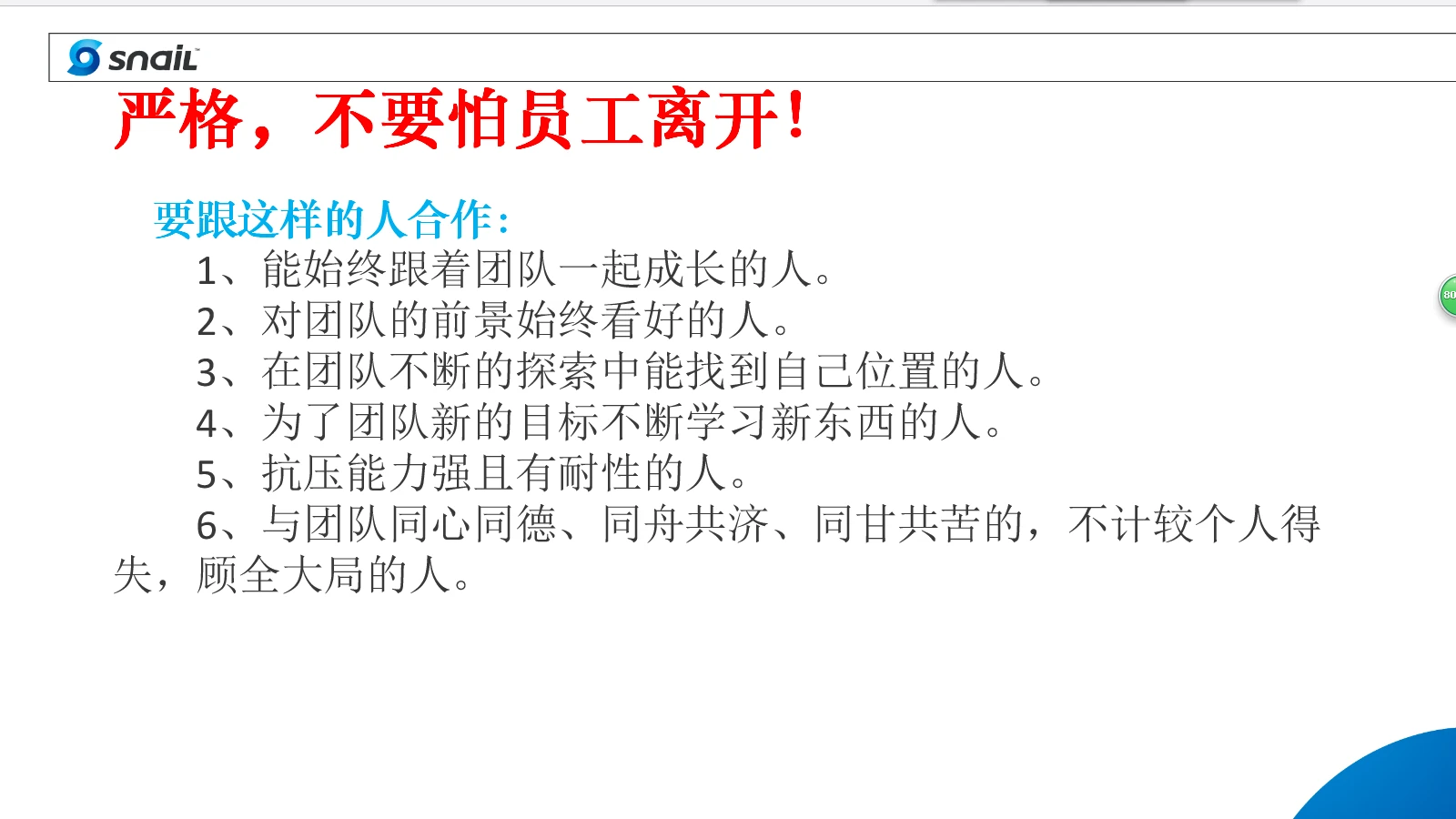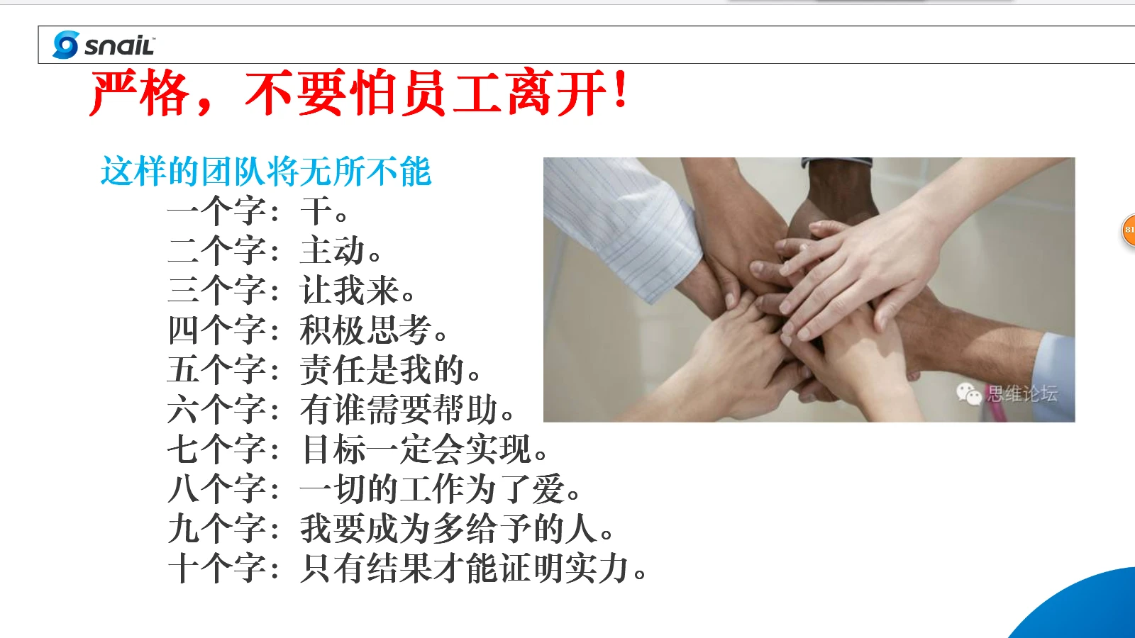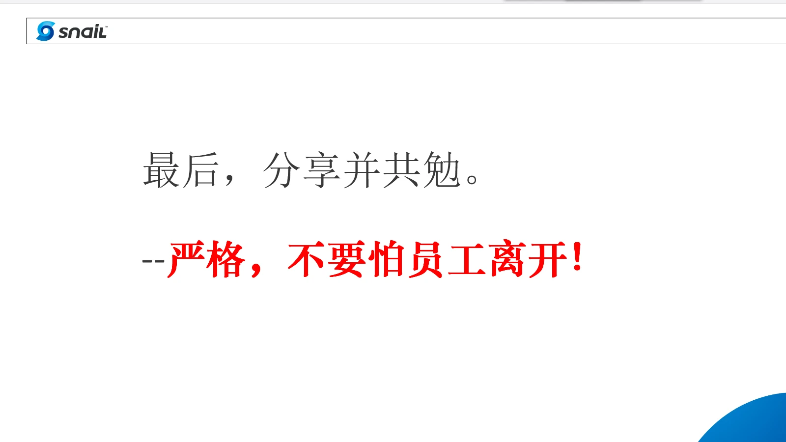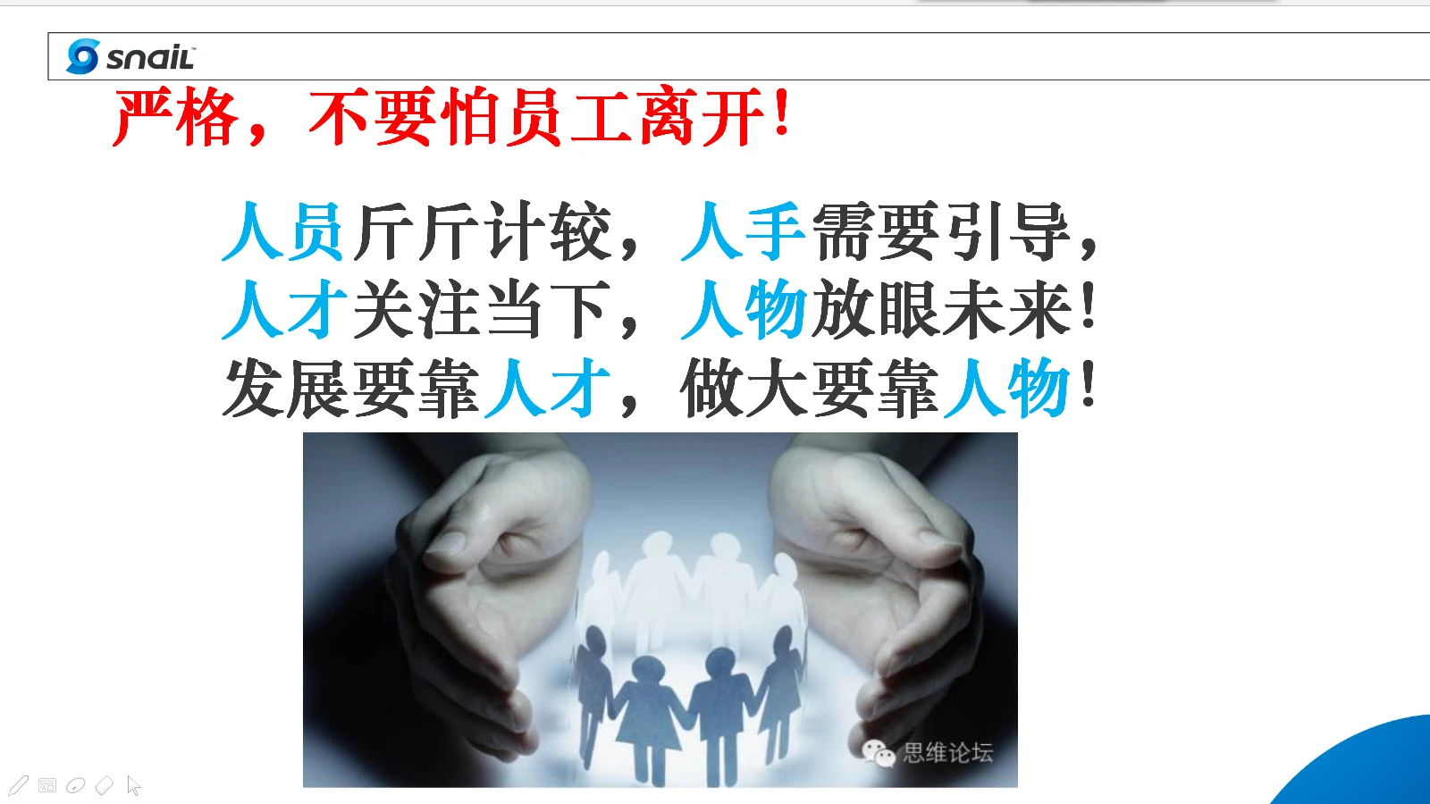 會(huì)議的最後(hòu),常務副總林春華跟全體管理人員分享主題--《嚴格,不要怕員工離開(kāi)!》與大家共勉,全體管理人員積極踴躍的參與互動。